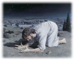 prosterné dans le jardin de Gethsémané, quelques heures à peine avant la